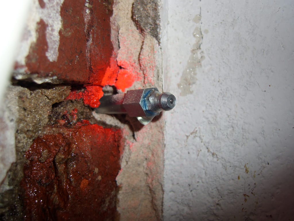 Steigt im Mauerwerk kapillar die Feuchtigkeit an, hilft eine nachträgliche Horizontalsperre: Harz in Kombination zu Druck.